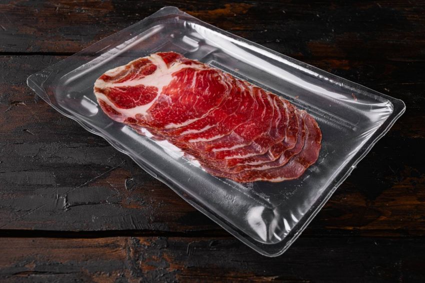 Качество упаковочного материала. Вакуумные пакеты из многослойной полиамидной плёнки толщиной 80–120 мкм держат герметичность несравнимо дольше, чем тонкий однослойный полиэтилен. Промышленные производители используют именно такие материалы. Для мяса особенно актуальны пакеты PET/PE — они сочетают прочность и высокие барьерные свойства. При фасовке мясной продукции также используется качественная подложка под мясо, которая обеспечивает сохранность формы продукта и впитывает излишки влаги.
